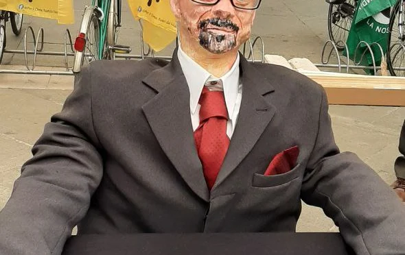 Una presenza provocatoria e inattesa sabato 12 Marzo, a Ravenna. Il Ministro della Finzione ecologica Cingolani è stato avvistato in Piazza del Popolo, seduto alla sua nuova scrivania. Ebbene sì, la campagna nazionale Per il clima fuori dal Fossile ha individuato per Cingolani la migliore collocazione per poter lavorare a stretto contatto con chi determina la sua agenda. Direttamente a Ravenna, dove Eni ha il suo quartier generale.