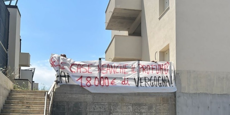 Per questo abbiamo deciso di affiggere uno striscione presso l’area dei lavori in via Strada Settima, con la scritta: “Della casa neanche il profumo. ERAP: 18.000 euro di vergogna.”