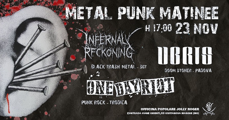 Il 23 Novembre le porte del Jolly Roger si apriranno prima del solito, dalle 17 ospiteremo il #METALPUNKMATINEE