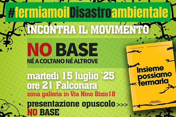 Martedì 15 luglio in Galleria a Falconara Marittima #fermiamoildisastroambientale ospita gli attivisti del movimento toscano No Base, né a Coltano né altrove, nella cornice di un loro tour estivo promosso dalla Campagna Per il clima Fuori dal fossile, per incontrare vecchi e nuovi territori in lotta e fare rete contro guerra e nocività.