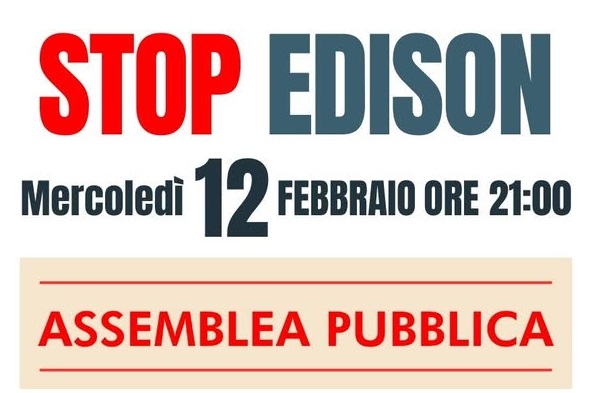 Mercoledì 12 febbraio alle ore 21 incontro pubblico dell’Assemblea Permanente Stop Edison presso i locali sotto della chiesa Sant’Antonio Abate a Minonna.