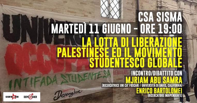 Macerata – ‘La lotta di liberazione palestinese ed il movimento studentesco globale’ Incontro/dibattito con Mjriam Abu Samra ed Enrico Bartolomei @ Sisma